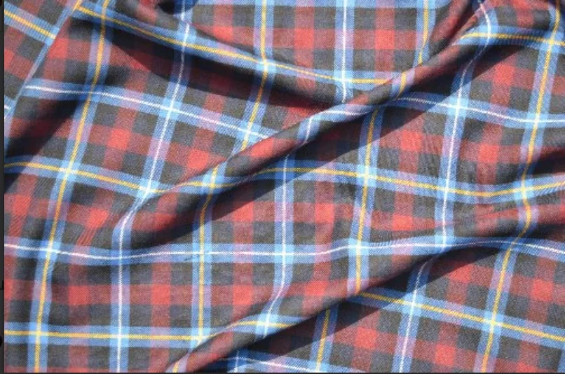 Tartans originated in woven wool, but now they are made in many other materials, and are patterned cloths consisting of criss-crossed, horizontal and vertical bands in multiple colours.